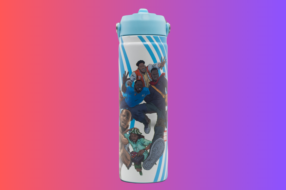 The “Together We Rise to a New Height” water bottle, designed for the GMAC Boys & Girls Club, draws inspiration from the vibrant murals found at Club sites, symbolizing unity, growth, and limitless potential